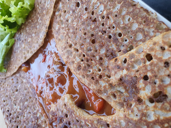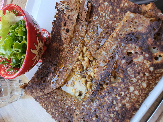 Nos galettes sont faites à base de farine noire et nos crêpes à base de farine T65 du Moulin Ceard des Hautes-Alpes élaborées à partir de céréales 100 % françaises.